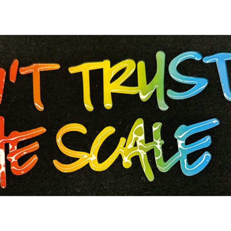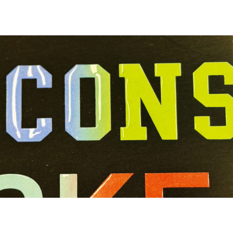 It has good covering power and only needs to be printed once on dark fabrics.